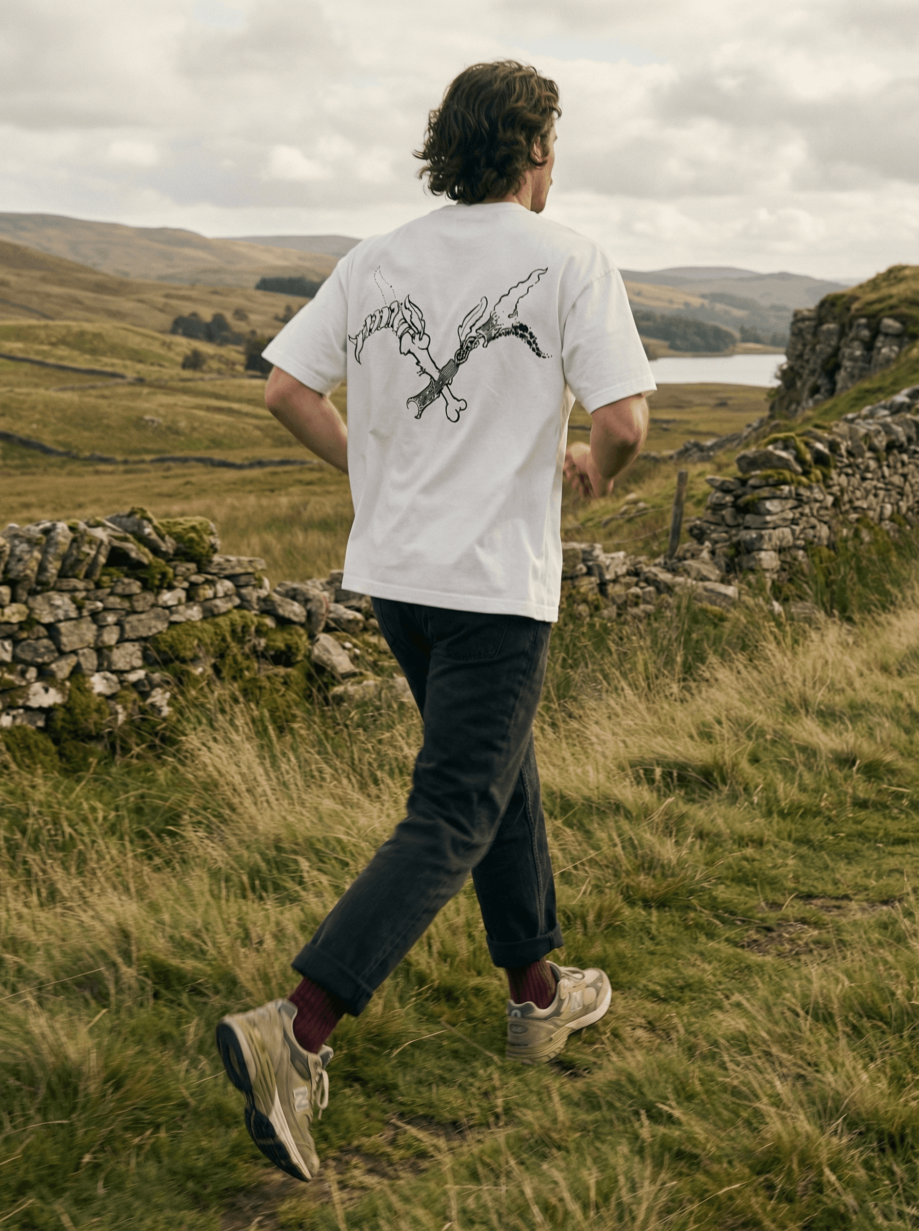 Everything is produced with sustainability at the core. Fabrics are organic cotton only. It grows at a slower, more natural pace which gives it a softer feel and a longer life. All garments are made in a renewable energy powered factory. The print process uses direct to garment technology which embeds ink into the fibres without washing off. This removes unnecessary waste and keeps the process clean. The inks meet GOTS certification standards and contain no animal derived ingredients. Every part of production follows the same rule. Be thoughtful, be responsible and be kind to the environment.